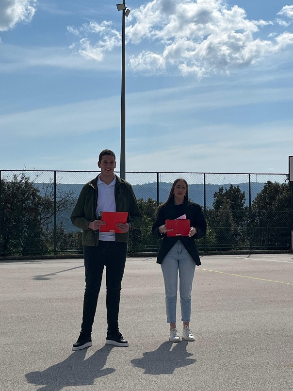 Program je započeo u svečanom tonu izvođenjem lirskih stihova pjesme „Staze od prašine“ autorice učenice Antee Glavinić. Pjesmu je interpretirala učenica Dragica Udženija, koja je ovom izvedbom dodatno istaknula uspjeh škole na županijskom natjecanju iz pisanja lirskih pjesama, gdje je osvojeno treće mjesto.